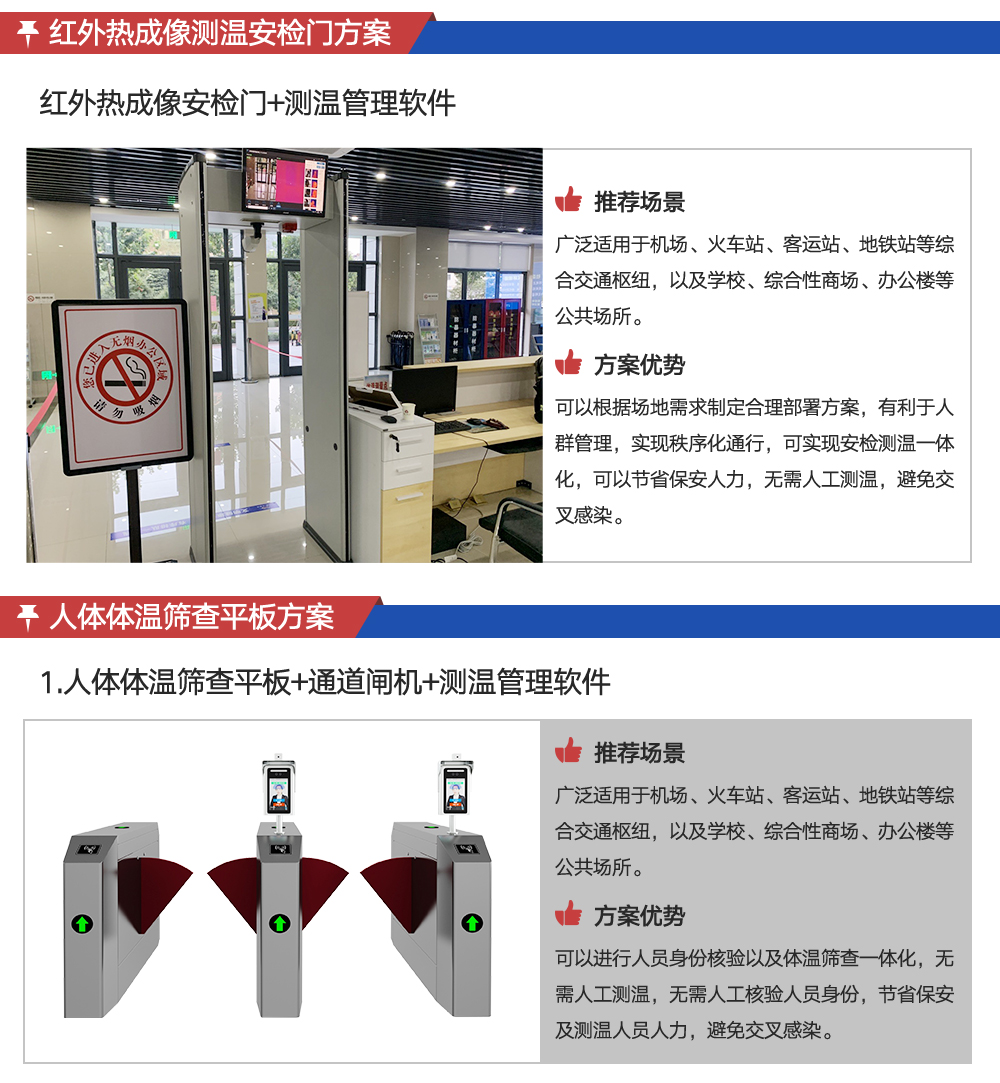 溫度安檢門采用非接觸式測溫,安全無感:傳統的紅外測溫需要近距離進行測量,加大了病毒通過飛沫或接觸傳播的風險,溫度安檢門支持在一米之外的安全距離進行精準檢測;