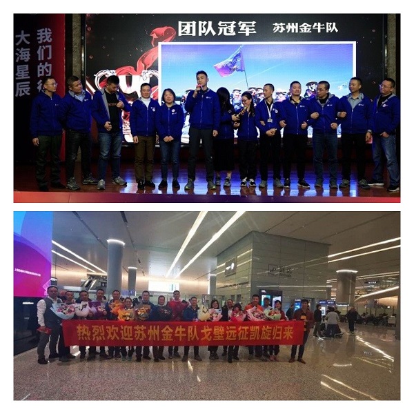 通過四天三夜的戈壁大漠挑戰,我們每個人經歷了“希望,失望,絕望,守望”的心靈歷程,我們蘇州金牛隊能夠成為本次挑戰賽的標桿,并非偶然!“團隊”的作用是我們取得成功的關鍵因素,首先非常感謝我們陸隊長強有力領導及超強的責任心,在自己重感冒及腿受傷的情況下依然不拋棄、不放棄帶領團隊一路向前。同時我們的隊友能夠互相配合,完美搭配,始終保持團隊凝聚在一起,詮釋了“一個人可以走得快,一群人可以走得更遠”的真諦!在戈壁大漠,我們問過自己,也問過隊友,如果把我們任何一個人拋棄在茫茫戈壁會如何?回答驚人的一致:“在絕望中死去”。在茫茫戈壁,我想到了我的公司,不停的問過自己,我們公司到底是一個團隊,還是一個團伙?作為領頭人,我是否有像陸隊長一樣帶領公司伙伴?伙伴在生活、工作中遇到困難時,是否有同事互相鼓勵,互相幫助,互相撐扶? 現在,我們是不是有伙伴被拋棄在“茫茫戈壁”? 感謝“蘇州金牛隊”所有隊友,讓我找到了團隊的標桿!