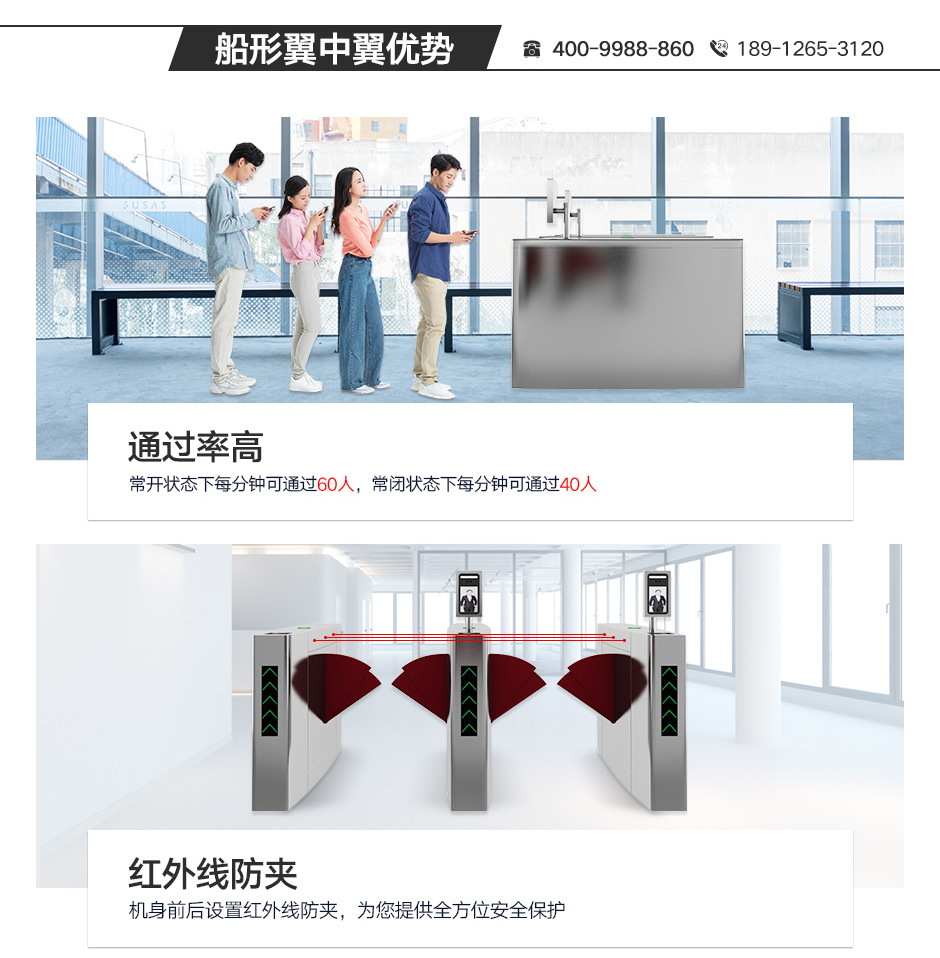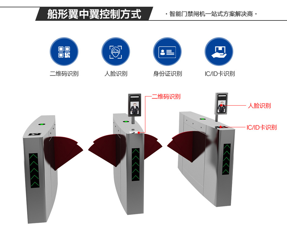 定制翼中翼機芯,同時配合多對紅外信號,可嚴(yán)謹(jǐn)控制行人出入,刷卡成功后,擺翼回縮,通道成無障礙狀態(tài),行人依次通過紅外后,閘機自動控制關(guān)閘。標(biāo)準(zhǔn)翼閘機芯把獨特的機械傳動、微處理器控制及各種讀寫技術(shù)有機地融為一體,通過配置不同的讀寫設(shè)備,即可完成對通道通行的智能化控制與管理,解決行人出入口通道所有的控制問題。