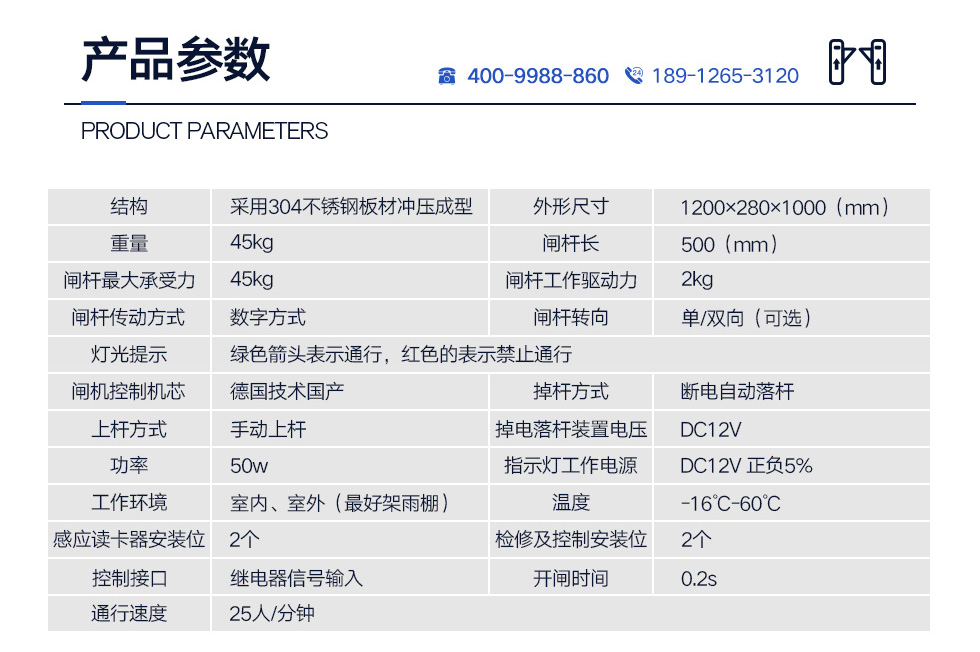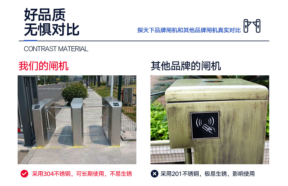 ETW-101橋式直角三輥閘(半自動)是我公司自行開發、研制、生產的智能通道管理設備,通過配置不同的讀寫設備,即可完成對通道通行的智能化控制與管理。整個產品外形采用不銹鋼板沖壓成型,造型美觀大方,防銹、耐用,且系統對外采用標準電氣接口,可方便的將條碼卡、ID卡、IC卡等讀寫設備集成在本設備上,從而為出入人員提供有序文明的通行方式,并可杜絕非法人員進出,同時為了滿足消防通道的要求,在緊急情況下停電落桿,組織人員疏散。
