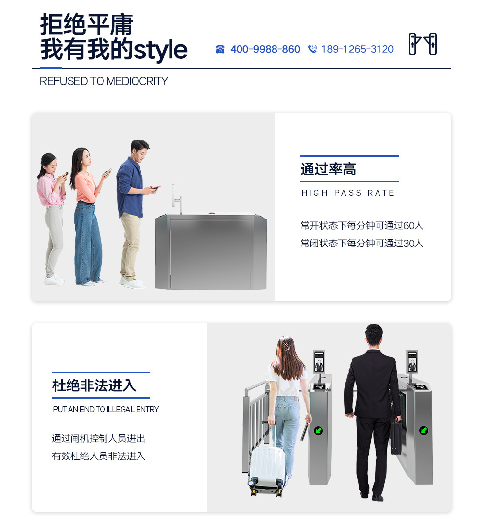 ETW-109八角三輥閘帶封板是我公司針對中高端客戶需求,自行設計研發的一款三棍閘外型,其機箱外殼箱式圓腳機箱,標配大尺寸通行狀態指示燈,機箱空間大,方便集成門禁讀卡設備。此款閘機外型可配用新款機械/半動動及全自動機芯,整體性能得到進一步提升,被廣泛用于工廠,小區,會展中心,體育場館,旅游景區等場所。