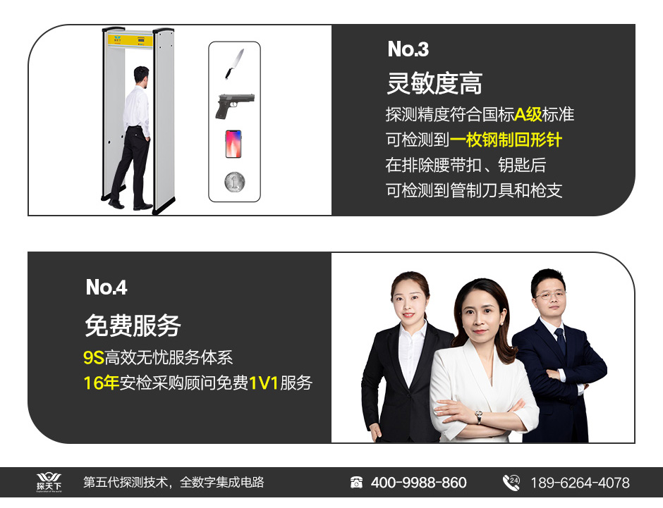 [探測(cè)精度]:安檢門靈敏度大大高于國(guó)家相關(guān)標(biāo)準(zhǔn),高靈敏度可以檢測(cè)到一枚鋼質(zhì)回型針,也可以排除皮帶扣、皮鞋、文胸等的影響,檢測(cè)到大件金屬或者管制刀具和槍支等違禁物品。