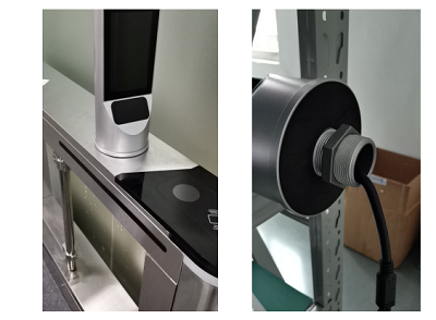現(xiàn)將人臉設(shè)備的圓柱插入閘機頂蓋孔,在使用出廠包裝配的螺母片從閘機蓋內(nèi)部鎖于立柱的螺紋管處,使用工具擰緊夾住機箱蓋即可。