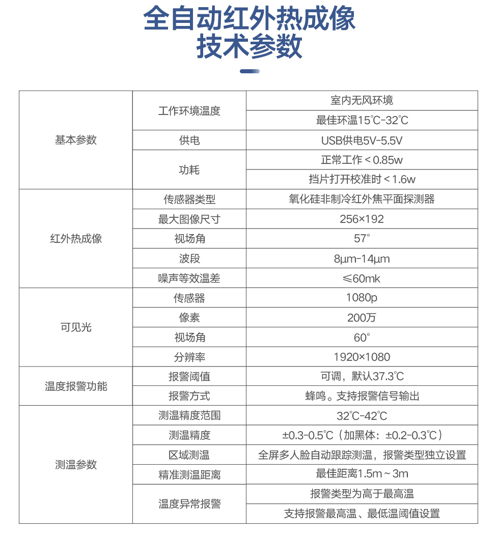 * 高精度人體溫度檢測,精度±0.3-0.5℃(加黑體:精度±0.2-0.3℃)